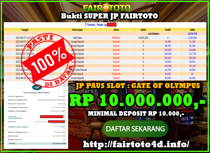 Jika anda memainkan permainan slot online bersama situs slot terpercaya pastinya semua kemenangan anda dibayarkan full. Tentu saja anda sedang menemukan situs yang tepat sebab bersama 7 situs Slot terpercaya 2023 ini kemenangan anda akan dibayarkan secara full. Jadi anda tidak perlu ragu dan khawatir jika ingin bermain permainan slot online ini karena kemenangan anda akan sangat di apresiasi dengan memberikan anda pembayarkan kemenandan slot online yang jelas dan terpercaya. Bukti Kemenangan ini juga bisa anda check sendiri kebenarannya di dalam group facebook atau website resmi bukti pembayaran yang di berikan oleh Situs RTP Slot.